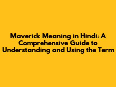 Maverick Meaning in Hindi: Exploring the Translation