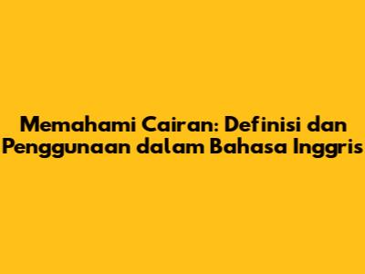 Memahami Cairan: Definisi Dan Penggunaan Dalam Bahasa Inggris