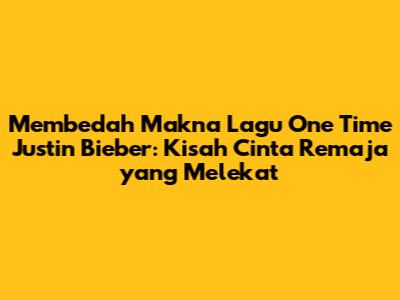Justin Bieber's 'One Time', guys, adalah lagu yang membawa kita kembali ke masa ketika cinta pertama terasa begitu kuat dan tak terlupakan. Dirilis pada tahun 2009 sebagai single debutnya, lagu ini dengan cepat meroket ke tangga lagu dunia, menjadi soundtrack bagi banyak remaja di seluruh dunia. Tapi, apa sebenarnya makna di balik lirik catchy dan melodi yang bikin nagih ini? Mari kita bedah bersama-sama, yuk!