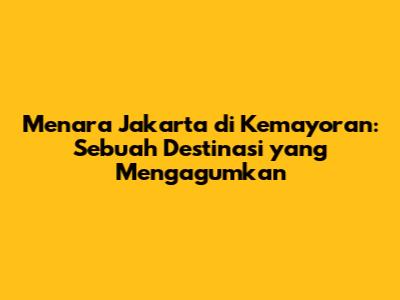 Menara Jakarta di Kemayoran – Guys, siapa sih yang nggak penasaran sama salah satu ikon arsitektur keren di Jakarta ini? Buat kalian yang doyan banget sama foto-foto kece dan pengen tahu lebih banyak tentang bangunan-bangunan ikonik, artikel ini pas banget buat kalian. Kita bakal bahas tuntas tentang Menara Jakarta yang megah ini, mulai dari sejarahnya, lokasi, foto-fotonya yang bikin mata nggak berkedip, sampai daya tariknya yang bikin kita pengen segera meluncur ke sana. Jadi, siap-siap buat terpesona ya!