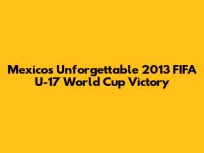 Mexico's Triumph: 2013 FIFA U-17 World Cup Glory
