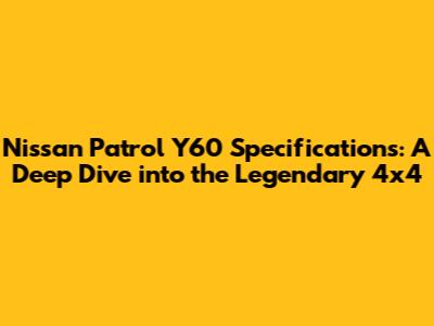 Hey guys! Today, we’re diving deep into the Nissan Patrol Y60, a true legend in the world of 4x4s. Known for its ruggedness, reliability, and off-road prowess, the Y60 has carved a special place in the hearts of adventurers and overlanding enthusiasts worldwide. Whether you're a seasoned Patrol owner, a potential buyer, or just a curious gearhead, this comprehensive guide will cover everything you need to know about the Nissan Patrol Y60 specifications. We'll explore its engine options, dimensions, mechanical features, and more, giving you a complete picture of what makes this vehicle so iconic. So, buckle up and let's get started!