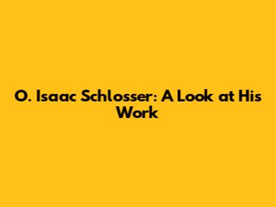 O. Isaac Schlosser: A Look At His Work