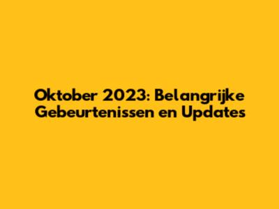 Oktober 2023: Belangrijke Gebeurtenissen En Updates