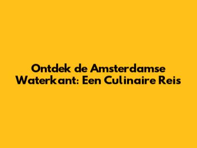 Ontdek De Amsterdamse Waterkant: Een Culinaire Reis