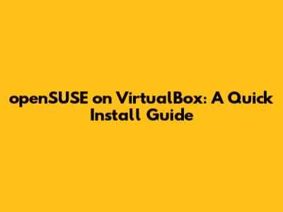 OpenSUSE On VirtualBox: A Quick Install Guide