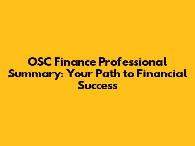 OSC Finance Professional Summary: Your Path To Financial Success