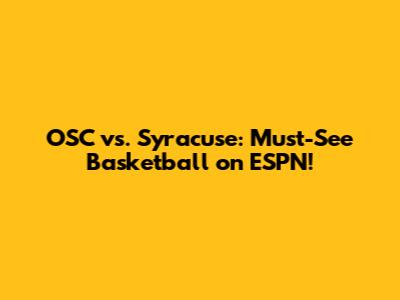 OSC Vs. Syracuse: Must-See Basketball On ESPN!