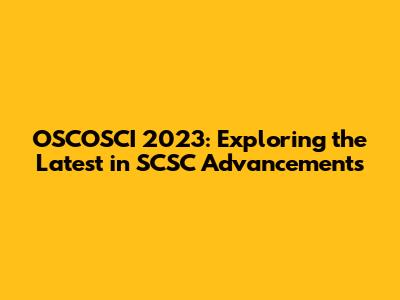 OSCOSCI 2023: Exploring The Latest In SCSC Advancements