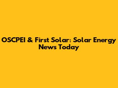 OSCPEI & First Solar: Solar Energy News Today