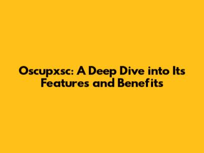 Oscupxsc: A Deep Dive Into Its Features And Benefits