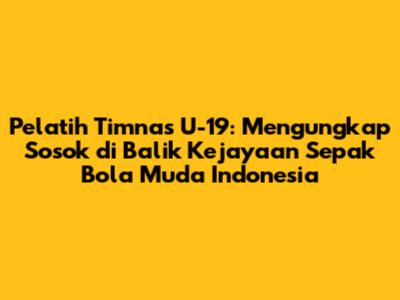 Pelatih Timnas U-19 adalah sosok penting dalam ekosistem sepak bola Indonesia. Mereka adalah guru, mentor, dan pahlawan bagi para pemain muda. Peran mereka sangat krusial dalam membentuk generasi emas sepak bola Indonesia. Melalui tangan dingin mereka, bakat-bakat muda diasah, mental dibentuk, dan impian diukir.