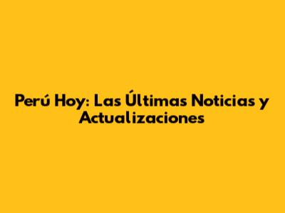 Perú Hoy: Las Últimas Noticias Y Actualizaciones