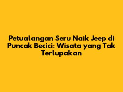Naik jeep di Puncak Becici adalah pengalaman wisata yang wajib banget kalian coba, guys! Dengan jeep puncak becici, kalian bisa menjelajahi keindahan alam Puncak Becici dengan cara yang lebih seru dan menantang. Nikmati pemandangan hutan pinus yang hijau, udara yang sejuk, dan spot-spot foto yang instagramable. Jangan lupa untuk mempersiapkan diri dengan baik sebelum memulai petualangan, dan selalu jaga kebersihan serta kelestarian lingkungan.