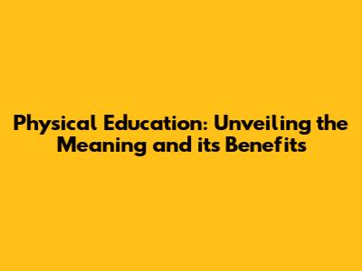 Physical Education: Meaning And Benefits