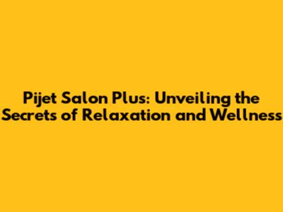 Pijet Salon Plus: Your Guide To Relaxation And Wellness