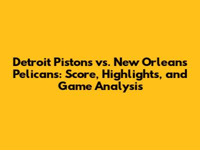 Pistons Vs. Pelicans: Score, Highlights, And Game Analysis