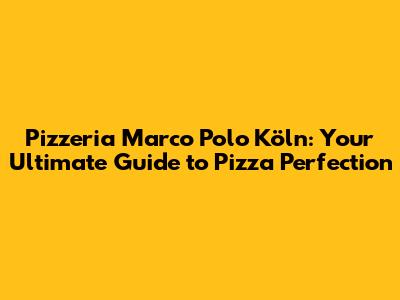 Hey pizza lovers! If you're in Köln (Cologne), Germany, and your stomach is rumbling for a slice of heaven, then you absolutely have to check out Pizzeria Marco Polo. This place isn't just a pizzeria; it's an experience. From the moment you walk in, you're greeted with the aroma of freshly baked dough and the promise of a seriously delicious meal. I'm here to give you the lowdown on everything you need to know about Pizzeria Marco Polo Köln, from their mouthwatering menu to what makes them a local favorite. Get ready to have your taste buds tantalized!