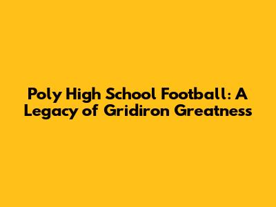 Poly High School Football: A Legacy Of Gridiron Greatness