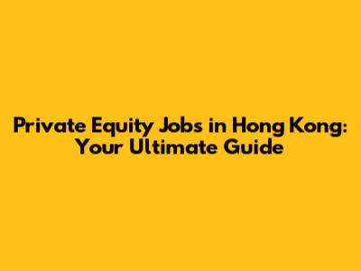 Private Equity Jobs In Hong Kong: Your Ultimate Guide