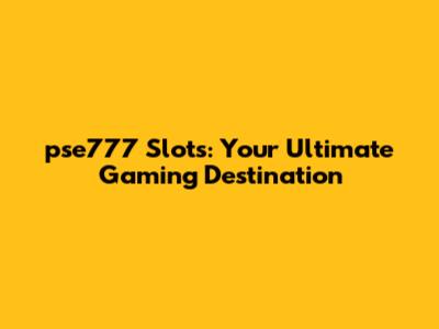 Pse777 Slots: Your Ultimate Gaming Destination