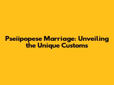 Pseiipopese Marriage: Unveiling The Unique Customs