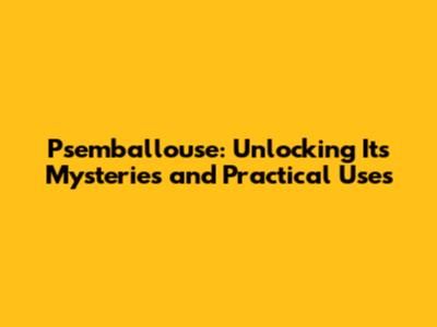 Psemballouse: Unlocking Its Mysteries And Practical Uses