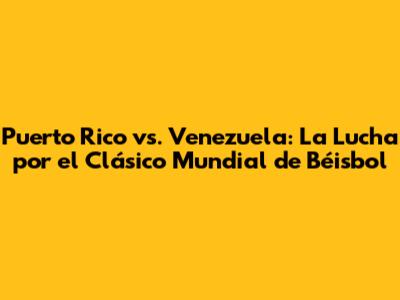 Puerto Rico Vs. Venezuela: Batalla Por El Clásico Mundial
