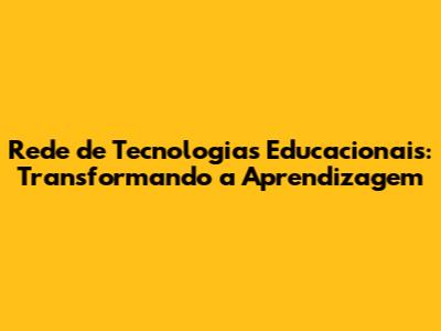 Rede De Tecnologias Educacionais: Transformando A Aprendizagem