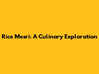 Rice Mesri: A Delicious Journey Through Flavors And Traditions