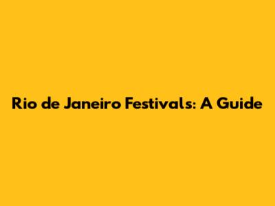 Rio De Janeiro Festivals: A Guide