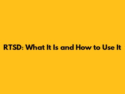 RTSD: What It Is And How To Use It