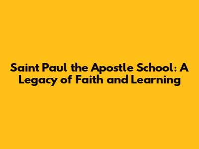 Saint Paul The Apostle School: A Legacy Of Faith And Learning