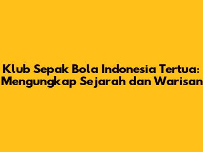 Warisan dan pengaruh klub sepak bola tertua sangatlah besar dalam perkembangan sepak bola Indonesia. Mereka telah memberikan kontribusi yang signifikan dalam berbagai aspek, mulai dari pembentukan identitas sepak bola Indonesia hingga pengembangan pemain dan infrastruktur.
