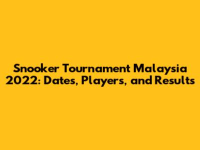 Snooker Tournament Malaysia 2022: Dates, Players, And Results