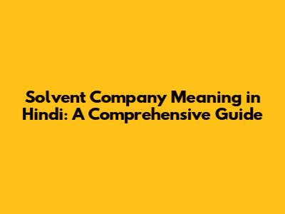 Solvent Company Meaning: A Hindi Guide