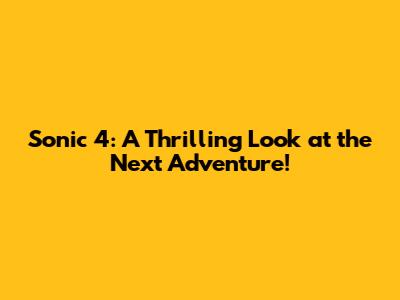 Sonic 4: A Thrilling Look At The Next Adventure!