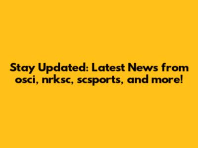 Stay Updated: Latest News From Osci, Nrksc, Scsports, And More!