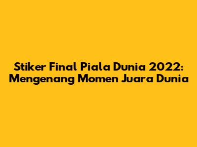 Stiker Final Piala Dunia 2022 menjadi lebih dari sekadar memorabilia; mereka adalah jendela menuju sejarah, mengabadikan emosi, dan momen-momen puncak dari turnamen sepak bola paling bergengsi di dunia. Dari kebahagiaan yang meluap hingga drama yang menegangkan, stiker ini merangkum esensi dari perhelatan akbar di Qatar, tempat Argentina muncul sebagai juara. Mari kita selami lebih dalam dunia stiker final Piala Dunia 2022, menjelajahi bagaimana mereka menjadi bagian tak terpisahkan dari narasi sepak bola, dan bagaimana mereka terus menginspirasi penggemar di seluruh dunia.