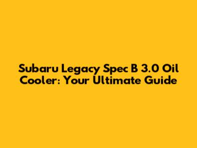 Subaru Legacy Spec B 3.0 Oil Cooler: Your Ultimate Guide
