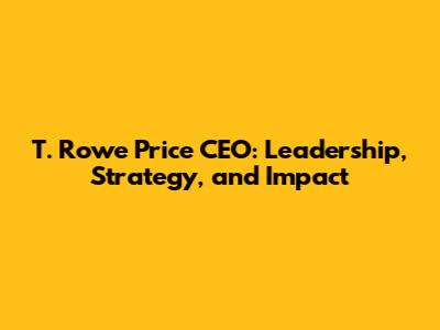 T. Rowe Price CEO: Leadership, Strategy, And Impact