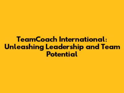TeamCoach International: Boosting Leadership & Teamwork