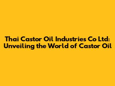 Hey everyone! Ever wondered about Thai Castor Oil Industries Co Ltd and what makes them tick? Let's dive deep into the fascinating world of castor oil, exploring its origins, its uses, and the key players in its production, particularly focusing on this company. We'll uncover how this versatile oil is made, where it's used, and why it continues to be such a valuable commodity across a diverse range of industries. Buckle up, because we're about to embark on a journey that will teach you everything you need to know about castor oil and Thai Castor Oil Industries Co Ltd!