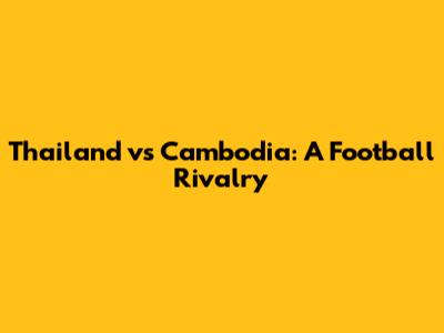 Thailand Vs Cambodia: A Football Rivalry