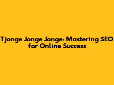 Tjonge Jonge Jonge: Mastering SEO For Online Success