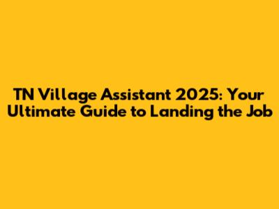 TN Village Assistant 2025: Vacancies & Application Guide