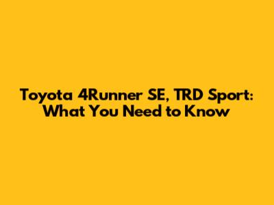 Toyota 4Runner SE, TRD Sport: What You Need To Know