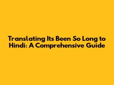 Translating 'It's Been So Long' To Hindi: A Complete Guide