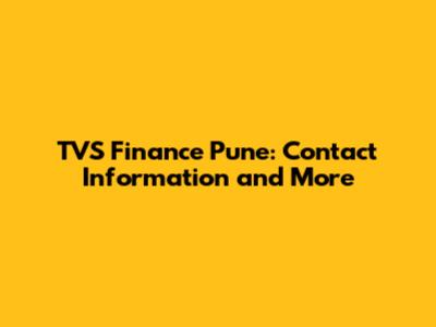 TVS Finance Pune: Contact Information And More