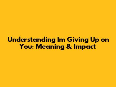 Understanding I'm Giving Up On You: Meaning & Impact